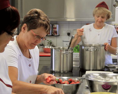 Die hauseigene Wäscherei sorgt für duftende Laken und frische Kleidung und unsere Küche hat bei den Bewohnerinnen und Bewohnern einen ausgezeichneten Ruf. Denn hier wird noch mit Liebe gekocht und täglich frischer Kuchen gebacken. Das Küchenteam bereitet leckere, abwechslungsreiche Mahlzeiten aus ausgesucht frischen Zutaten, die im Speisesaal in geselliger Runde verzehrt werden.